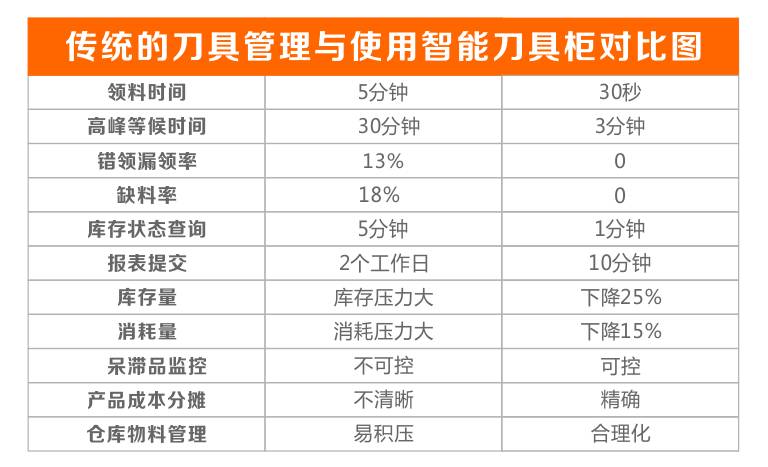 3) 24小时操作工自助领料,减少刀具库房管理的人员成本;